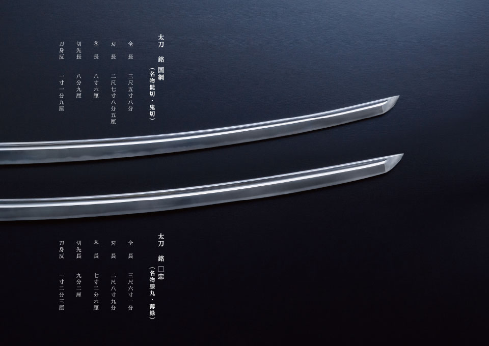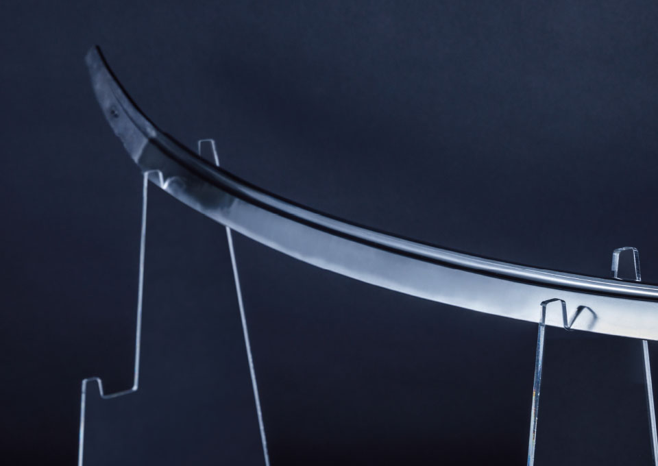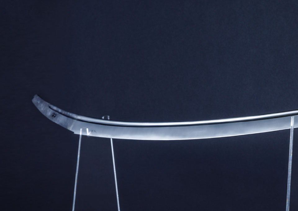 実制作は刀身を法量にあわせた原寸サイズを一振りずつ。兄弟刀とされる二振りを並べる事を前提にしたため、合わせるところと違いをだすところは明確に表現しました。
